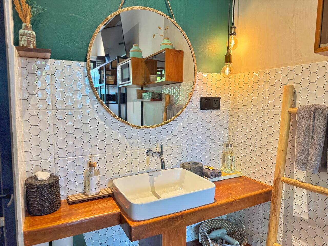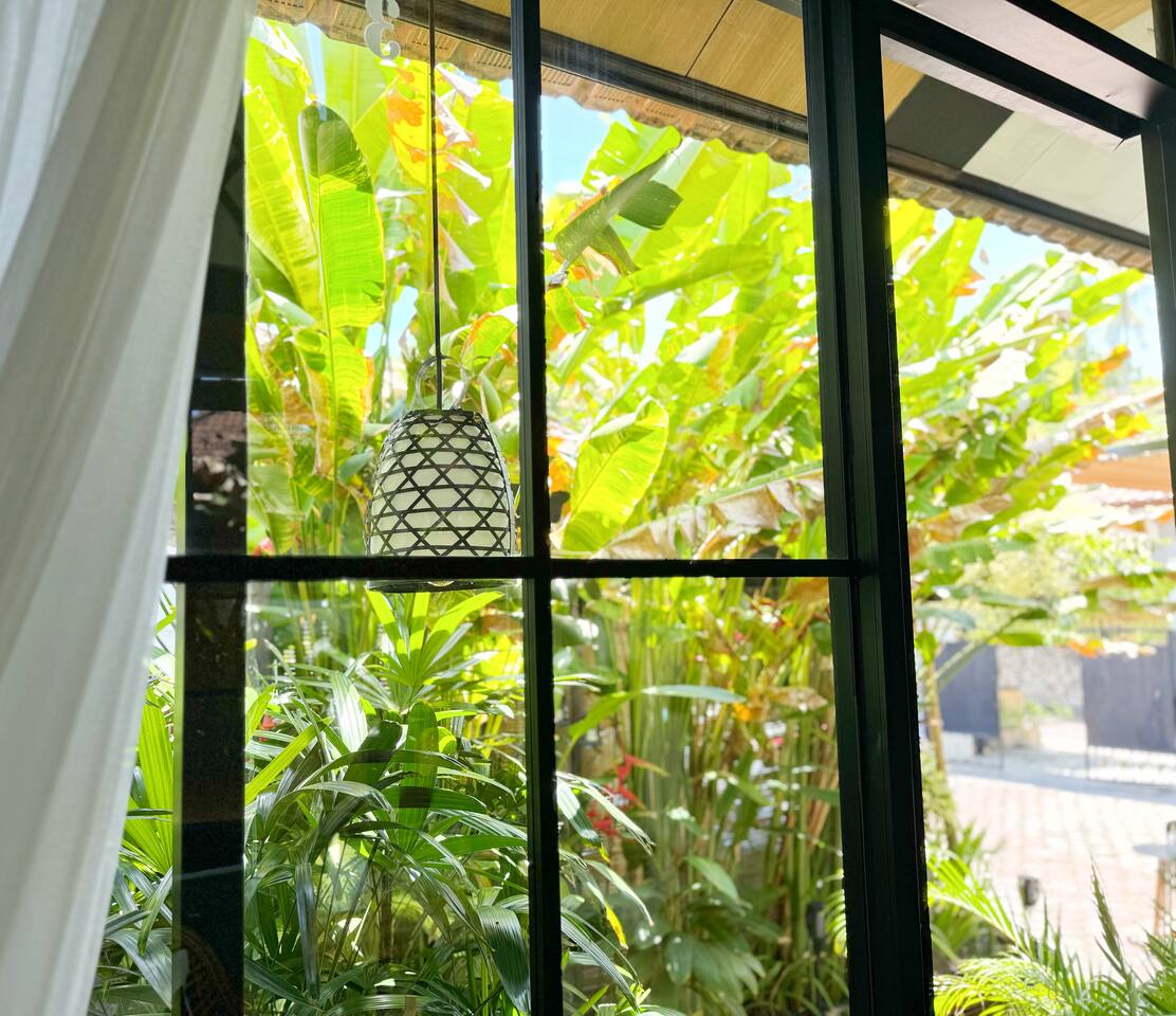 ⭐️The room offers 22 square meters, with super comfortable queen-size bed 160x200cm with en-suite Bathroom. Watch Netflix on your 43" Smart TV, or Enjoy the holiday catch up for reading book that we provide. ☕️ A cozy enclosed Patio perfect for enjoying cup of coffee or tea with Garden View 🏡Room Features : - Netflix access - High Speed Wi-Fi - AC - Ceiling Fan - Bar fridge - Hot and cold shower - Safety Box - Soft & Warm lighting 💡 ❤️Daily inclusion : - Unlimited Drinking Water - Coffee & Tea with sugar - Basic toiletries ( Soap, shampoo, hand soap) - High Speed Wi-Fi - Netflix access - Fresh Towels - Handmade Beach Towels